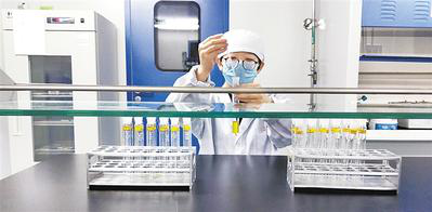 在河北天成藥業(yè)股份有限公司中心化驗室,化驗員正在對新生產(chǎn)出來的注射用過氧化碳酰胺進行質(zhì)量檢驗。河北日報通訊員 鄭富貴攝
